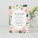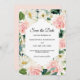 Defina o tom do seu dia especial com este elegante cartão de Save the Date de aquarela, apresentando flores rosa e brancas suaves, folhagens exuberantes e um layout moderno e limpo. A moldura floral romântica destaca seus nomes e data de casamento de forma linda. Ideal para casamentos de primavera, jardim ou tradicionais. Personalize facilmente com os detalhes do seu evento para um anúncio sincero que os convidados irão guardar.