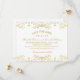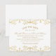 Um save the date glamouroso com bordas de damasco dourado brilhante na parte superior e inferior de um cartão branco limpo, com tipografia dourada quente e serifada em todo o cartão. O brilho sutil dá um toque luxuoso perfeito para casamentos formais de salão ou black-tie. Personalize todos os nomes, data e detalhes do evento para torná-lo seu.