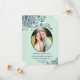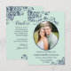 Esses cartões lindos são uma ótima maneira de informar aos amigos e familiares para reservar a data para o seu casamento. Eles apresentam um design nas cores verde menta e azul-marinho com sua foto em uma moldura oval rodeada por volutas e floreios ornamentados e letras em itálico com seus nomes, data e local do casamento. O verso tem um gráfico fofo de "nos reserve com um lápis" com espaço para uma nota que pode incluir um site onde os convidados podem obter mais informações.