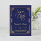 Reserve A Data Elegante Quadro de Casamento Azul Naval e Dourado