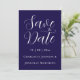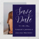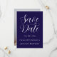 Cartão de “Save the Date” de casamento com foto moderna – Escrito elegante clássico em azul-marinho e branco