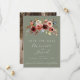 Coloque o tom para o seu grande dia com este elegante cartão floral, salve o cartão de data, com uma burgundy profunda e florescente num fundo verde de sábio mudo. O verso inclui espaço para sua foto de noivado, fazer esta é uma escolha romântica e pessoal para sua queda ou casamento no inverno. Personalize com seus nomes, data de casamento e detalhes pessoais.
