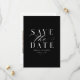 Este design de save the date elegante com uma foto apresenta uma paleta de cores preto e branco e uma opção moderna de código QR para fornecer as informações do seu próximo casamento. Este design é totalmente personalizável com o seu texto e URL para o código QR. A foto está no verso, com um save the date elegante e simples na frente.