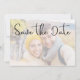 Dê aos seus convidados com este lindo cartão de foto 'save the date'. O design apresenta um efeito de vellum falso com foto do casal e tipografia de script. Personalize com os nomes da noiva e do noivo, data e local do casamento. Se gostar deste design em outro produto, entre em contato em karuna@karunaskreations.com.