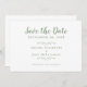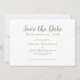 Cartões salve a data elegantes e delicados em lindos sábios verdes e brancos são clássicos, formais e eternos. O design romântico sem fronteiras permite que você escolha facilmente a forma de papel para o lançamento do seu noivado. Duas decorativas florescem cada uma contendo um solteiro cardíaco delicadamente com o nome da noiva e do noivo. Para obter resultados ideais, pule as linhas e capitalize como na amostra. Envie perguntas ou solicitações personalizadas para invitationsuites@gmail.com