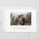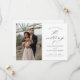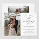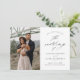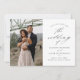 Um cartão elegante de script de 2 fotos de casamento para salvar a data com detalhes de caligrafia elegante, uma foto vertical e texto clássico na frente. O verso tem uma foto horizontal e site de casamento para os convidados obterem mais informações. Clique no botão editar para personalizar este design.