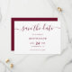 Anuncie sua festa de casamento burgundy com esses cartões de save the date minimalistas, porém elegantes. Personalize facilmente online. Itens correspondentes disponíveis para complementar este cartão de save the date de casamento burgundy com uma fonte de letra moderna.