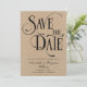 Renovações de vow de tipografia elegantes salvam o cartão de data com o script de tipografia ''salvar a data'' em letras negras em um fundo kraft falso. Personalize com seus detalhes e data.