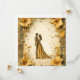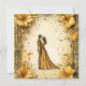Um trabalho de arte de ouro maravilhosamente desenhado que representa um casal romântico abraçando-se dentro de um quadro floral ornamentado. Os intrincados design e tons quentes exudem elegância e romance, perfeito para temas decorativos e de casamento de na moda.