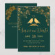 Reserve A Data Elegante Verde Esmeralda e Flores Douradas com Pás