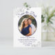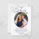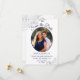 Esses belos cartões são uma ótima maneira de informar aos seus amigos e familiares que guardem a data do seu casamento próximo. Eles apresentam um design elegante em azul-marinho e branco com sua foto em uma moldura oval rodeada por espirais e ondulações cinza prateado rendadas e letras em script sofisticado com seus nomes, data e local do casamento. O verso tem um gráfico fofo de "marque-nos a lápis" com espaço para uma nota que pode incluir um site onde seus convidados podem ir para obter mais informações.
