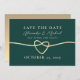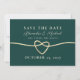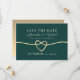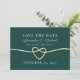 Anuncie seu grande dia com este elegante coração verde esmeralda e corda dourada salve o cartão de data. Apresentando um layout minimalista, um humor romântico interligado do coração, e fontes refinadas de serifa e script, é perfeito para casais que buscam um olhar eterno e sofisticado. Um fundo de joia ousado dá o tom para uma celebração moderna, mas clássica. Combine este cartão com o cheio Emerald Green Wedding Suite para uma aparência coesa de papelaria. Precisa de ajuda para personalizar? Envie-me um e-mail em bpkolman@gmail.com — Estou feliz em ajudar!