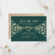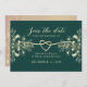 Chic emerald green e gold salvam o cartão de encontro com sotaques florais elegantes e um motif romântico. Este design moderno é perfeitamente personalizável com seus nomes, data de casamento e detalhes, fazer a forma perfeita de anunciar sua celebração. Impresso no estoque premium, este cartão de eterno dá o tom para o seu casamento e deixa uma impressão duradoura nos seus convidados.