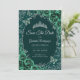 Emerald Green e prata Quinceanera, salvem o cartão. Recursos, fontes de script, borboletas, rosas de aquarela e tiara. Perfeito para uma elegante celebração de glam estilo princesa. Personalize com seus próprios detalhes. Impressos convites Zazzle ou modelo de impressão digital instantânea para download.