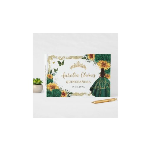 Reserve A Data Emerald Green Sunflower Floral Dourada Quinceañera