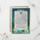 Emerald Gem stone Heart, com dois poemas, invadiu um painel de pérolas em um fundo marinho esmeraldo e uma borda falsa de ouro.