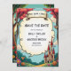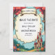 This elegant fairytale-style save the date invitation is perfect for a modern wedding. The retro design features a vintage enchanted forest, a castle illustration, and black calligraphy on a storybook-themed background.