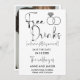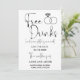 A tipografia branca e negra tem graça "Bebidas grátis (e vamos nos casar) salvem as datas. Adicione seus detalhes à frente e uma foto ao fundo. Se você tiver uma foto horizontal que gostaria de usar em vez de uma vertical - entre em contato comigo e eu poderei fazer a mudança para você e enviar um link de pedido personalizado.