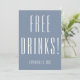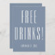 Azul e branco engraçados Salve o cartão de Datas com Bebidas Grátis na frente e Oh, e, a propósito, estamos nos casando! nas costas. Personalize com nomes em roteiro e cidade, estado e sua data especial de casamento para garantir que as pessoas estejam prontas para comemorar com você! Veja a coordenação de itens no nosso compro, Encantado Finch.