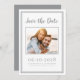 O design moderno e simples de moldura de foto para Save The Date apresenta sua foto de engajamento favorita fechada em uma moldura cinza última e moderna em um fundo branco crocante. Personalize e compartilhe os detalhes do seu engajamento e casamento com os seus convidados com letras e caligrafia cinza última e moderna. O design é completado com uma moldura dupla moderna em cinza. O design de configuração de retrato paisagem (largura maior que altura) funciona lindamente com fotos aproximadas ou fotos retangulares de você e seu noivo em uma localização cênica. Use sua imaginação e escolha a sua favorita! Contate invitationsuites@gmail.com para perguntas ou pedidos personalizados.