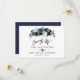 Design de cartão encantador com uma bela cor d'água cor rosa pincel e buquês de flores azuis marinhos, falso quadro de ouro sobre fundo branco; no fundo azul da meia-noite e no fundo de um buquê floral. Use a ferramenta Personalizar para adicionar suas informações e fazer alterações. Para obter itens correspondentes, visite minha Coleção Floral de Blush Azul de Marinho.