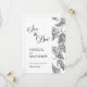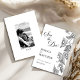Este lindo Save the Date floral apresenta flores pretas e brancas com bela caligrafia na frente e uma foto do casal no verso. Para personalizar, basta clicar em "Personalizar este design", carregar sua foto e inserir seus dados. A Zazzle cuida do resto.