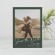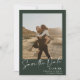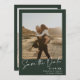 A caligrafia de guião elegante simples 2 fotos de casamento verde e branco profundo salvam a data.