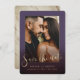 Os Cartões salve a data de Sobreposição de Fotos Douradas e Puras e Letras de Escuro são uma elegante tendência e tantas chic, com uma camada de gradiente ombre escura para realçar seu texto e letra de script de escrita manual dourada. Personalize-o com a sua fotografia. Mostrada em uma falsa folha de ouro. - Casamento Salve a data cartões com fotos personalizados! ~ Cheque meu compro para ver a suíte inteira para este design!