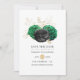 Casamento floral de folha de ouro verde, preto e preto elegante, salve o cartão de data personalizável de acordo com as suas especificações de evento.