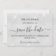 Um moderno e elegante Salve a Data para um casamento. Um fundo prateado falso decorado com brilho falso. Personalize e adicione uma data e nomes. O texto: Salvar a Data é gravado com um script de estilo com letra de tendência grande.