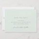 Cartões de aviso de data de casamento minimalistas em verde pastel. "Convite formal a seguir" é escrito em letra de caligrafia.