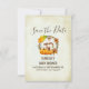 Salve o cartão de data para um aniversário ou chá de fraldas. Com um bonitinho por trás de algumas abóboras cor de água laranja. Uma coroa foliar rodeia-os com uma folha de carvalho e flores laranja e outros ramos e folhas. Background é uma imagem digital de pergaminho de vinheta (o papel não é pergaminho real).