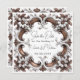 / Uma estrutura quadrada intricadamente projetada com padrões de ornamentado. O quadro é simétrico, com um motivo floral central rodeado por espirais e cartuchos elaborados. A paleta de cores consiste em branco e ouro, com os acentos de ouro destacando o motivo central e o branco, fornecendo um pano de fundo contrastante. O quadro parece tridimensional, com profundidade e textura evidentes no artesanato.