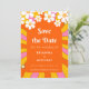 Surpreenda seus amigos e família com este legal cartão Salvar a data com retrorreflector daisy, arch laranja brilhante e texto personalizado. Altere facilmente o texto clicando na opção "personalizar este modelo".