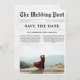 Anuncie seu amor como uma manchete! Esse estilo clássico de "salvar a data" do jornal apresenta uma foto romântica e um layout preto-e-branco eterno. Com um design e espaço inspirados em vintage para sua história única, é a combinação perfeita de diversão, romance e inesquecível.