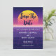 Este casamento retrô dos anos 80 Salve a data mostra a arte legal, roxa de ondas sintetizadas e um pôr do sol acima das linhas de neon. Esse cartão de "800" incrível é ousado e divertido, certo? Pegar o olho de alguém e avisá-los que você está jogando uma festa de casamento de "rockin'".