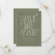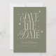 Elegante e caprichoso, salve o cartão de data com fonte boho que diz "salve a data" com estrelas em um plano de fundo verde sábio. Você pode adicionar uma foto atrás.