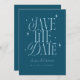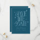 Elegante e caprichoso, salve o cartão de data com fonte boho que diz "salve a data" com estrelas sobre fundo azul teal. Você pode adicionar uma foto atrás.