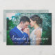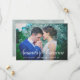 Um casamento elegante salve o cartão postal de data projetado para acomodar sua foto favorita de noivado de sangramento horizontal ou paisagístico. Seus nomes aparecem como uma sobreposição de texto branco em um script clássico de caligrafia escrita à mão. Personalize com sua data de casamento e local de casamento embaixo. Cartões que se revertem a um padrão botânico sutil com espaço para incluir sua URL do site de casamento ou qualquer informação adicional que você escolher. Você pode alterar a cor de fundo clicando em Personalizar/Personalizar e selecionando uma nova cor de fundo na paleta ou digitando um código hexadecimal de cor.