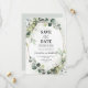 Cartão de casamento moderno e elegante para salvar a data da primavera / verão apresenta um buquê de folhagem suave em aquarela, folhas verdes exuberantes / folhas botânicas / eucalipto / suculentas e moldura geométrica dourada. Encontre mais designs e variações correspondentes na minha loja "blissweddingpaperie". E sinta-se à vontade para entrar em contato comigo para personalização adicional ou itens correspondentes.