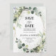 Cartão moderno e elegante de primavera / verão para salvar a data do casamento, com um buquê de verdejante aquarela suave, folhas verdes exuberantes / folhas botânicas / eucalipto / suculentas e moldura geométrica dourada. Encontre mais designs e variações correspondentes na minha loja "blissweddingpaperie". E sinta-se à vontade para entrar em contato comigo para personalização adicional ou itens correspondentes.