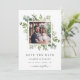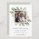 Este casamento salvou a data do convite fotográfico com a cor d'água do eucalipto, folhas verdes e um quadro quadrado dourado. Para personalização mais avançada deste design, clique no link "Personalizar mais". Itens correspondentes também estão disponíveis.