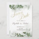 Aquarela eucalipto verde salva a data. Salve a data que pode ser personalizada com seu nome. Selecione o botão "personalizar" para alterar o estilo, a cor e o tamanho da fonte.