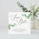 Announce your special day with this elegant photo Save the Date card, featuring watercolor eucalyptus leaves on the front and space for your personal photo on the back. The fresh greenery design in dusty green tone pairs beautifully with modern calligraphy, creating a timeless and stylish keepsake. Perfect for botanical, rustic chic, garden, or elegant wedding themes. Available as both a printed card and a digital download.