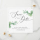 Anuncie seu dia especial com esta elegante foto Salve o cartão de Data, com folhas de cor d'água eucalipto na frente e espaço para sua foto pessoal no verso. O design verde fresco em tons verdes empoeirados se encaixa perfeitamente com a caligrafia moderna, criando um eterno e na moda. Perfeito para temas de casamento botânicos, rústicos, jardins ou elegantes. Disponível como cartão impresso e download digital.
