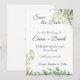 Announce your special day with this elegant and airy "Save the Date" card. Featuring delicate white wildflowers, soft eucalyptus greenery, and classic cursive typography, this design perfectly sets a romantic tone for a garden, forest, or rustic-chic wedding. Fully customizable with your names, date, and venue.