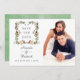 Pinho rústico nevado e floral de abeto em aquarela cartão de natal de casamento com fundo de lavagem em aquarela verde-musgo.