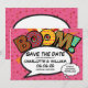 Personalize com seus nomes e detalhes para anunciar a data do seu evento especial. Tema de arte pop de história em quadrinhos moderno, design retrô divertido, perfeito para casamentos, chá de noiva, chá de bebê, batizados, festas de noivado, celebrações de aniversário, formaturas, festa de aniversário e outros eventos especiais ao longo do ano! Um design legal, moderno e divertido que coloca o wham zap pow no seu dia. Por que não adicionar um pouco de zap pow e wham no mundo hoje! Criado por ComicBookPop© em www.zazzle.com/comicbookpop*