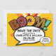 Personalize com seus nomes e detalhes para anunciar a data do seu evento especial. Tema de arte pop de história em quadrinhos moderno divertido retrô, perfeito para casamentos, chás de noiva, chás de bebê, batizados, festas de noivado, celebrações de aniversário, formaturas, festas de aniversário e outros eventos especiais ao longo do ano! Um design legal, moderno e divertido que coloca o wham zap pow no seu dia. Por que não adicionar um pouco de zap pow e wham no mundo hoje! Criado por ComicBookPop© em www.zazzle.com/comicbookpop*