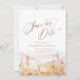 Watercolor autumn wildflower meadow and mountain with modern script, Earthy tones of terracotta, rust, ochre, and burgundy, warm and romantic, great for rustic fall wedding, mountain destination wedding, and boho floral wedding